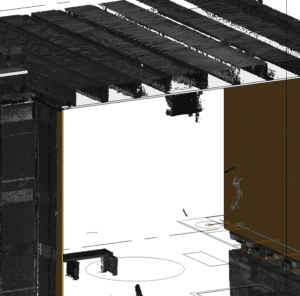 By overlaying the point cloud on the architectural plans, it was quickly confirmed that the architectural plans overestimated the amount of space available. The project was able to continue with the knowledge of how to maintain the design intent while working within the existing structure.